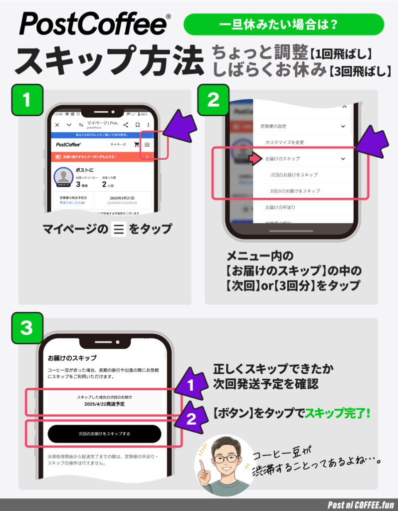 ポストコーヒーならややこしいこともなく、サクッと3ステップで完了!